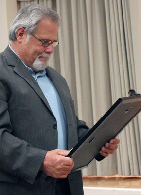 LaTonya McBride, the office administrator at First United Methodist of Starke, has worked with Moore for 14 years. She said she chose three words to describe him “because you don’t have all night for me to tell you all the stories about Michael Moore.”