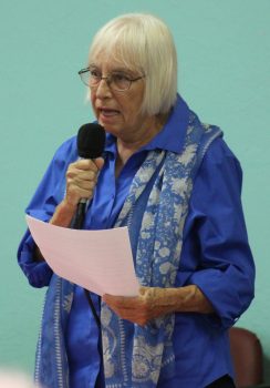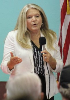 Kate Ellison told the crowd that Carolyn Spooner could not make the forum because of a family event.