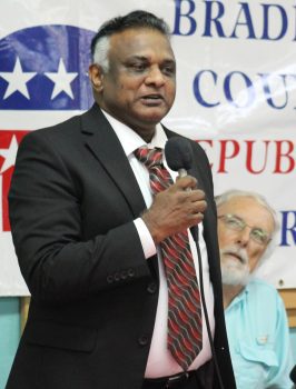 Alan Bhajan, who is running without party affiliation, briefed the crowd on his childhood in Guyana, his professional training in the U.S., and his return to his South American birthplace to lead a district with 18 high schools and 166 elementary schools with a budget of close to $1.5 billion.