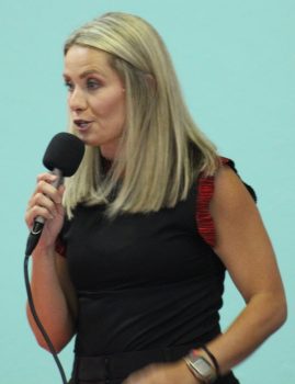 Dana Reddish Bell reminded audience members of her family’s heritage in Bradford County education, with both parents serving in the district.