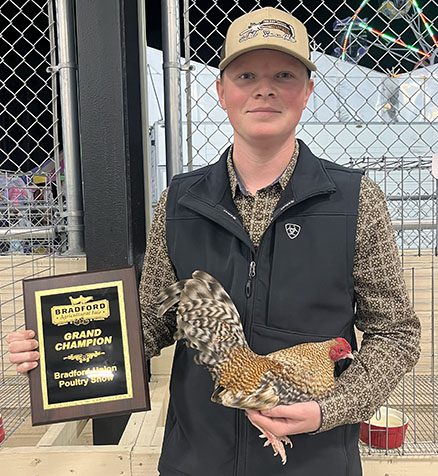 Blayne Hendricks showed the grand champion in poultry at the Bradford Agricultural Fair, while Bradford FFA received the reserve grand championship.
