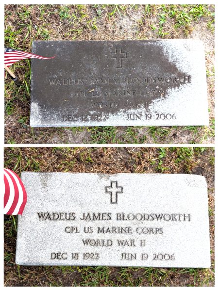 She also said she strictly follows cleaning guidelines issued by the Veterans Administration’s National Cemetery Administration, which prohibits pressure washing and prescribes a D2 biological solution and Magnolia or Tampico brushes.