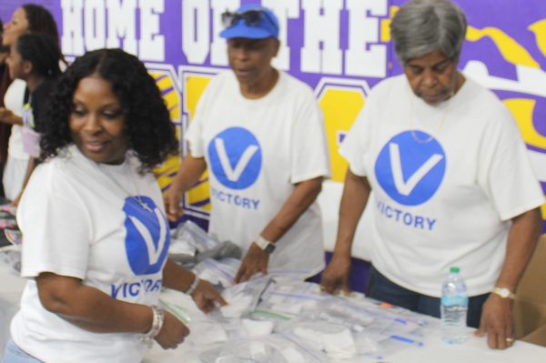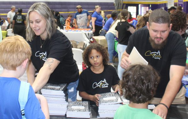 “Last year, we gave one pack of notebook paper,” she said. “This year, we’re giving out two per student. We’re giving two composition books.”
