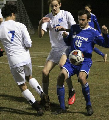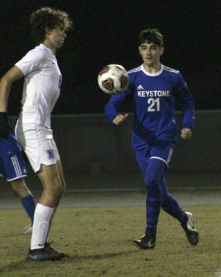 Keystone, after Newberry scored a goal, had chances to increase its lead going into halftime, with Aaron Wiley missing a shot on a breakaway attempt and Colaw getting a close-in attempt that was off the mark.