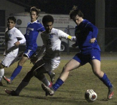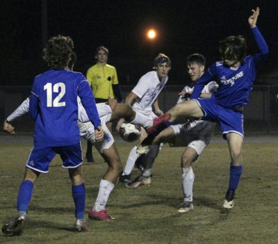 Logan Spence, Newberry’s Braelin Ludovici and Skylar Kedgley (l-r) converge on the ball. Photo by Cliff Smelley.Tyler Shaw pushes the ball upfield. Austin Edsall (background) is also pictured. Photo by Cliff Smelley.Chris Anderson. Photo by Cliff Smelley.Jordan Holmes (left). Photo by Cliff Smelley.Goalie Carson Eatmon. Photo by Cliff Smelley.Micah Wiley. Photo by Cliff Smelley.Logan Spence (foreground) and a Newberry player collide while fighting for possession of an airborne ball. Photo by Cliff Smelley.Tyler Colaw (left). Photo by Cliff Smelley.Austin Edsall (far right). Photo by Cliff Smelley.Logan Spence. Photo by Cliff Smelley.Tyler Shaw (far right) fights for control of the ball. Logan Spence (foreground, left) is also pictured. Photo by Cliff Smelley.Newberry’s Wil Meeker, Jacob Lepanto and Micah Wiley. Photo by Cliff Smelley.Skylar Kedgley (right) tries to maintain control of the ball against Newberry’s Daei Thompson. Logan Spence (background, right) is also pictured. Photo by Cliff Smelley.Gabe Buchanan (right). Photo by Cliff Smelley.Austin Edsall (left) and Ian Kruzan. Photo by Cliff Smelley.Tyler Colaw (left). Photo by Cliff Smelley.Luke Brunt dribbles upfield. Tyler Shaw and Tyler Colaw (background, l-r) are also pictured. Photo by Cliff Smelley.Chris Anderson (left). Photo by Cliff Smelley.Aaron Wiley (right). Photo by Cliff Smelley.Logan Spence (right). Photo by Cliff Smelley.Tyler Shaw (right). Photo by Cliff Smelley.Chris Anderson (left) and Jordan Holmes. Photo by Cliff Smelley.Tyler Colaw (right) defends Newberry’s Liam Hunter, who’s receiving a throw-in. Photo by Cliff Smelley.Gabe Buchanan (right). Photo by Cliff Smelley.Austin Edsall (left). Photo by Cliff Smelley.Newberry’s Daei Thompson (left) and Logan Spence. Photo by Cliff Smelley.Tyler Shaw (center). Photo by Cliff Smelley.Gabe Buchanan (far left) and Tyler Colaw (center). Photo by Cliff Smelley.