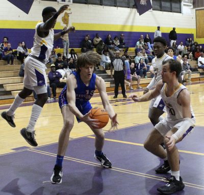 A three-pointer by Michael Bruzzese and a steal by Andru Siemer helped the Keystone Heights High School boys basketball team hold off Union County in the final seconds and win 55-48 on Jan. 19 in Lake Butler.