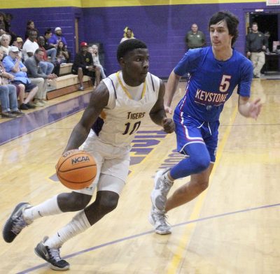 Union missed a field-goal attempt on its next offensive series, but the Indians committed a turnover with 32 seconds remaining. The Tigers couldn’t capitalize as Siemer came up with a steal for Keystone, which led to a basket by Pelham with 24 seconds remaining. Pelham was fouled on the shot and made the ensuing free throw to make the score 54-45.