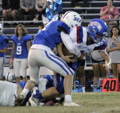 The Blue Devils (0-9) converted a fourth-and-1 play on their first series, with Brooks Beach carrying the ball for a 3-yard gain to the Keystone 45. Any momentum Stanton had was short-lived, with Williams sacking quarterback Heath Bell for a 9-yard loss on the ensuing first-down play. The Blue Devils eventually punted, with Keystone’s offense taking the field again at its own 22.
