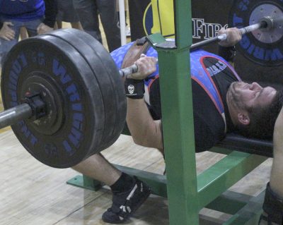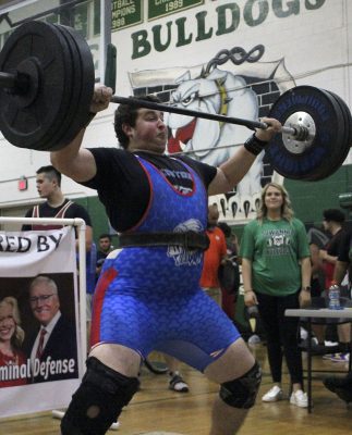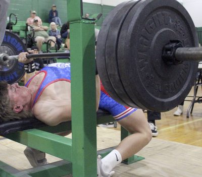Mistakes aside, the team did come out on top in three weight classes, with Overton, who lifted in the first sessions of the clean and jerk and bench press, becoming the first traditional champion of the day. Overton won the 169 class with a 590 total (290 clean and jerk, 300 bench press). That put him 85 pounds ahead of Chiefland’s Paul Davis. Overton had the best clean-and-jerk total by 45 pounds, while his bench-press total was 35 pounds better than everyone else’s.