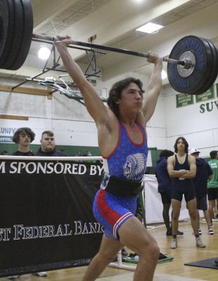 Keystone had 14 earn points in the Olympic competition, including champions Overton and Anthony-Rozier. Overton won with a 505 total (215 snatch, 290 clean and jerk), which put him 85 pounds ahead of Suwannee’s Isaiah Love, while Anthony-Rozier won with a 470 total (185, 285), which got him just past Suwannee’s Alex Mabey, who had a 465 total.