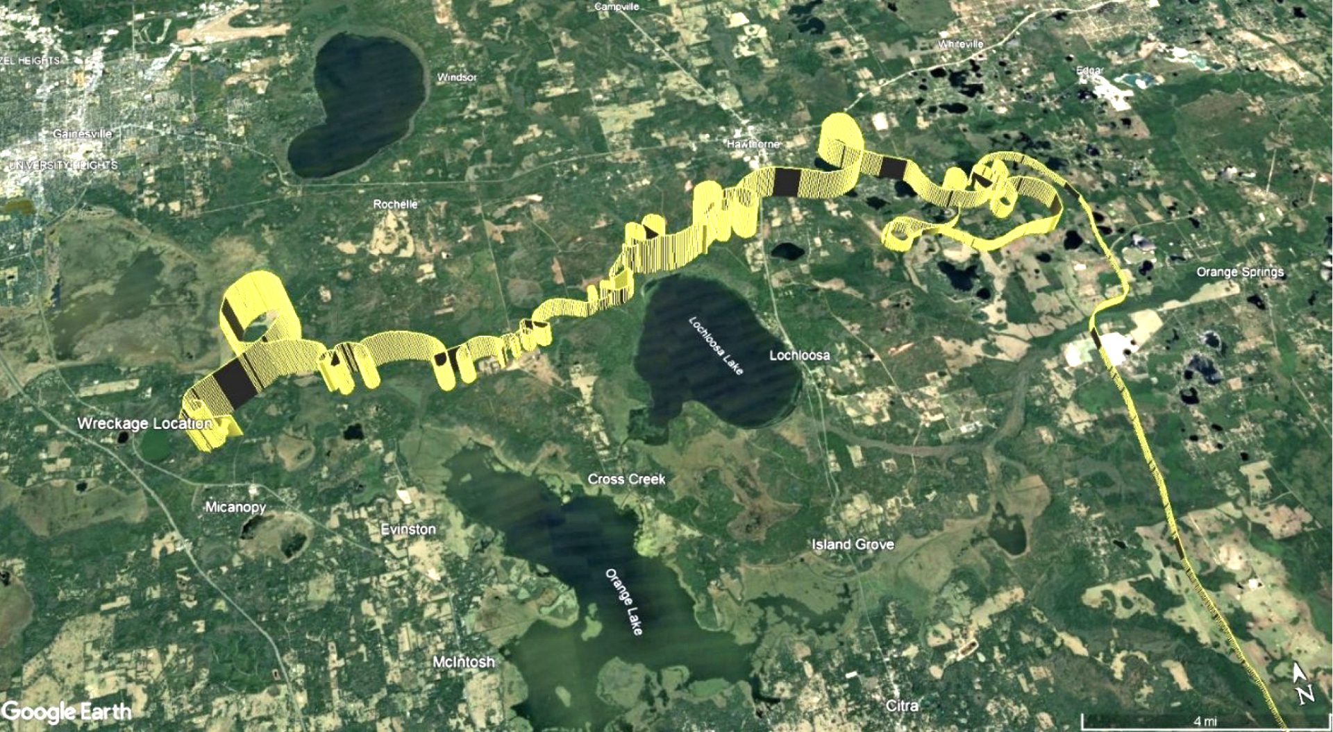 According to the NTSB preliminary report, the 2020 Keystone Heights High School graduate made several erratic 360-degree turns, as well as numerous climbs and descents to a maximum altitude of 6,900 feet and a minimum altitude of 500 feet between 1:35 p.m. and 2:09 p.m. before losing radar contact.