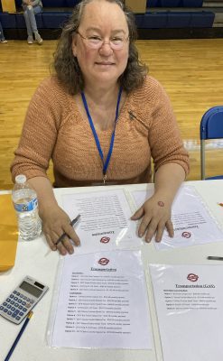 Stacy Wall, assistant to the pastor at Trinity Baptist Church, volunteered at the transportation table to help students decide on a car.
