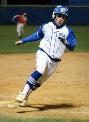 Alex Addington rounds third base on his way to scoring the Indians’ final run in their loss to Orange Park.