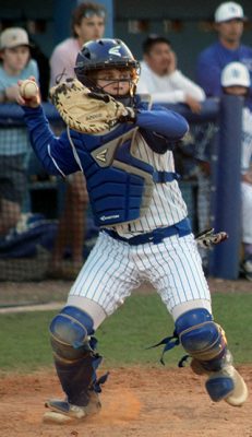 Catcher Alex Addington keeps an Orange Park baserunner from advancing.