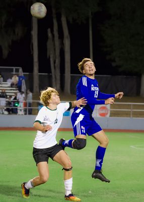 Trenton Noble scored both goals for the Keystone Heights High School boy soccer team in its 3-2 loss to Eastside in the Jan. 23 District 4-3A tournament semifinals in Alachua.