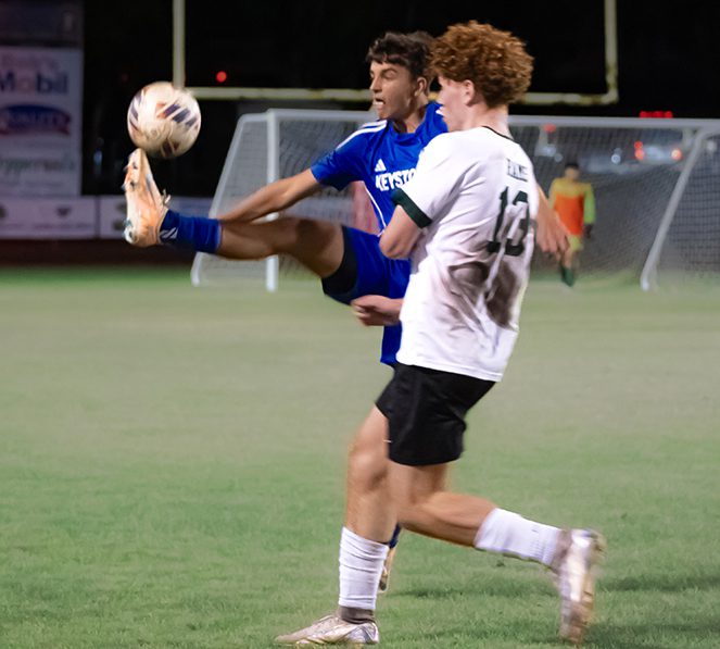 Trenton Noble scored both goals for the Keystone Heights High School boy soccer team in its 3-2 loss to Eastside in the Jan. 23 District 4-3A tournament semifinals in Alachua.