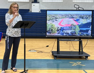 Principal Laurie Burke said she wanted to hold the ribbon-cutting ceremony because of athletics’ impact on student achievement. She added that the nearly half-million-dollar investment in the new facility is well worth it.