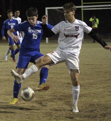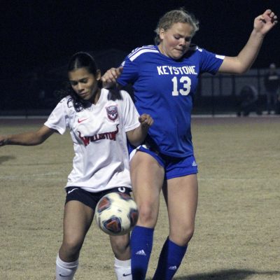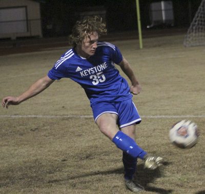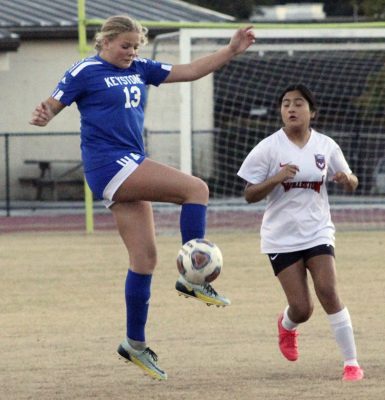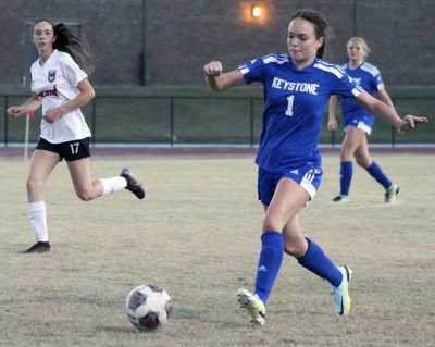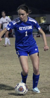 Keystone’s Kiersten Shaw was successful on a penalty kick in the 37th minute to even the score.