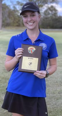 Candace Jackson finished as match medalist, helping the Keystone Heights High School girls golf team capture the District 3-1A trophy on Oct. 25 in Lake City.