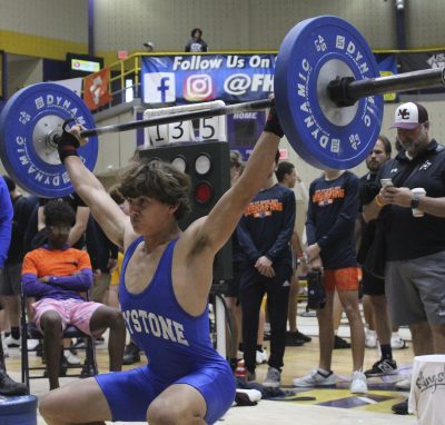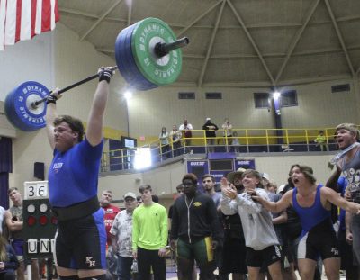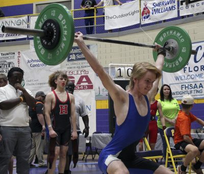 Dicks provided the last highlight for his team during actual competition. He cleaned and jerked 325 pounds on his second attempt, which was enough to give him the unlimited class championship by 5 pounds over Bolles’ Brendan Black. On his third attempt, he made a successful 40-pound jump to 365, breaking a school record and finishing with a 730-pound overall total, which consisted of a 365-pound bench press.
