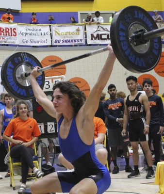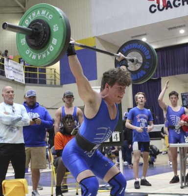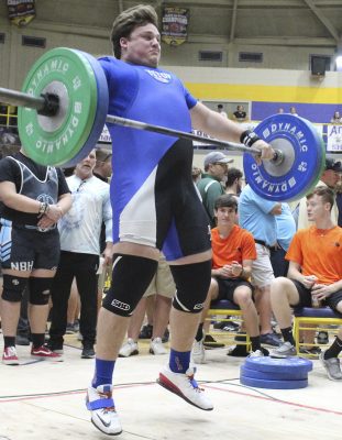 Mason Dicks placed fourth in the unlimited class in the snatch. Photo by Cliff Smelley.