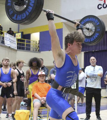 Clayton Kicklighter earned fifth place in the 183-pound class with a 540 total 295, 245), while Begue took sixth in the 129-pound class with a 405 total (220, 185). Begue earned his class’ last medal by finishing 20 pounds ahead of Marianna’s Tre Harvey.