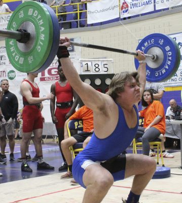 Jayden Goodman placed third in the 199-pound class in the snatch. Photo by Cliff Smelley.