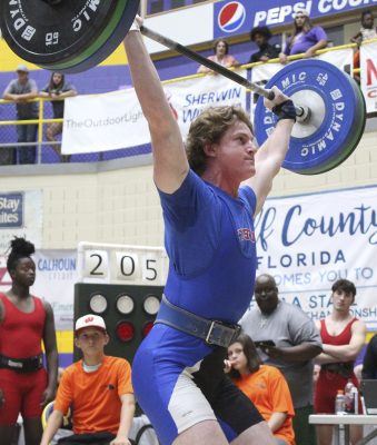 Caleb Moncrief was a runner-up in the traditional event also with a 650 total (325, 325) in the 238-pound class. He was 20 pounds behind champion Ellis Poplaski of The Villages and 5 pounds ahead of Port St. Joe’s D.J. Oliver.