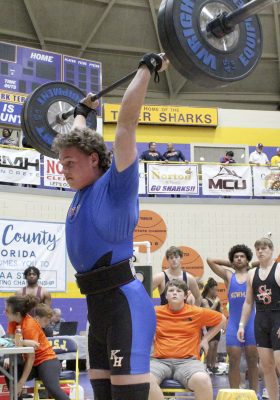 Jayden Goodman placed third as well with a 195 total in the 199-pound class. He tied with Florida High’s Chris Cotton, who weighed in at approximately 4 pounds less than Goodman. South Sumter’s Jackson Sovercool won the championship with a 205 total.