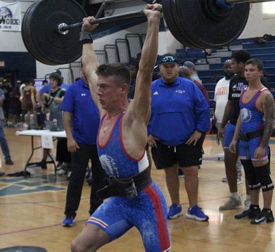 Mize, in winning the 119-pound class, was the top pound-for-pound traditional lifter (as determined by the Schwartz Formula). Weighing in a 117.6 pounds, Mize had a clean and jerk of 180 and a bench press of 235 for a 415 total. That put him 75 pounds ahead of teammate Dylan Currington, who was runner-up with a 340 total (180 clean and jerk, 160 bench).