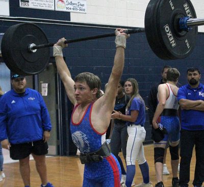 Keystone also had the following totals: Caleb Alvers, 139 class, seventh place, 305 (155, 150); Connor Mooneyham, 139 class, eighth place, 295 (145, 150); Brodyn Adams, 169 class, seventh place, 405 (190, 215); Hunter Crumpton, 183 class, eighth place, 385 (195, 190); Andrew Snider, unlimited class, 10th place, 430 (215, 215).