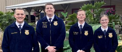 Lake Butler FFA’s poultry judging team won the state championship with a score of 1,363, putting it 29 points ahead of Bronson. Team member Blayne Hendricks was the individual state champ with a score of 468, which put him three points ahead of Kendal Craun of Peterson Academies of Technology. Lake Butler’s Peyton Kilgore placed eighth, while Tucker Dortch just missed out on finishing in the top 10 with an 11th-place finish. Pictured (l-r) are Dortch, Kilgore, Hendricks and Miley Wilson.