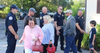 After the ceremony, attendees lined up to shake the hands of Clay County Fire Rescue Station 11 crew members.