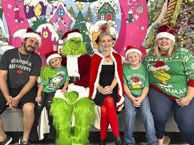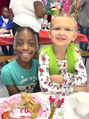 Students of Lawtey Elementary School were temporary residents of Whoville as they welcomed the Grinch himself to some Christmas Cheer! Pictured are Whoville Residents and Volunteers Tynsley Hardee, Shyann Clemons, The Grinch, Kaylee Devore, and student, Monroe Sparks.The Adkins family came together to join their little Whoville student, Christopher for breakfast. Little Christopher seemed slightly skeptical of the visiting Grinch! (Pictured L-R: Christopher, Christopher, Anna, & Mandy Adkins)Carter and Bentley Redding show off their festive breakfast choices. The Lawtey Elementary PTO and volunteers served up many delicious and colorful items.Alexis Boniface gave her biggest smile for the Grinch!David and William Devore are having some Saturday morning father-son time in Whoville.The Lawtey cafeteria was transformed into a small version of Whoville. Here, friends Dana Devore and Bristol Manning pose in front of one of the festive backdrops.Breakfast with the Grinch was enjoyed by three generations, Grandaughter, Kallie Morgan, with Grandmother Danielle Phillips, and mom Maegan Morgan.Siblings and cousins pose for a picture in front of the Whoville sign. Pictured are (l-r) Adrianna, Taurus, Alydia and Abrialle.Close friends are so fun to party with, especially in Whoville! Camille Simmons and Amelia Story had a wonderful time together.The Grinch willing posed with smiling friends and family! Pictured are (l-r) Raymond Masey, Cason Harley, Trip Masey and Lyndsey Baker.Everly was just one of the many sweet smiles all around Whoville on Saturday morning in Lawtey.Brothers Banx, Baylor and Brix are three peas in a pod with their matching green Grinchmas gear!