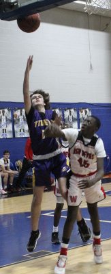 Anthony Wiseman (left) drives to the basket. Photo by Cliff Smelley.