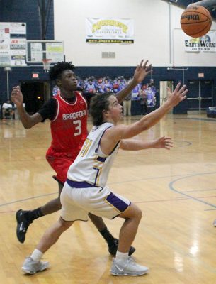 Third seed Bradford scored six of the game’s first nine points. The Tornadoes’ Terrence Slocum had the first basket of the game, while Damarion Dodd scored off a Caiden Carn steal to put Bradford ahead 4-2. A basket by Dylan Ruise would later put the Tornadoes up 6-3.