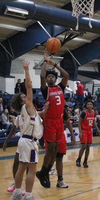 Garrison Smith glides to the basket for Lake Butler. Photo by Cliff Smelley.