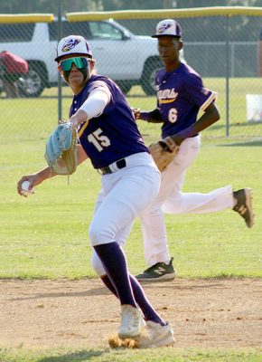 Second seed Bradford (4-7-1) cut the Tigers’ lead to three in the third. Julian Rhoden hit a leadoff single, followed by Braxton Mitchell drawing a walk. Kyler Hall was hit by a pitch to load the bases. Rhoden scored on a balk before Damarion “Bug” Dodd hit an RBI single. Gabe Rhoden was hit by a pitch to load the bases again. With two outs, Hall and Dodd both scored on an error.