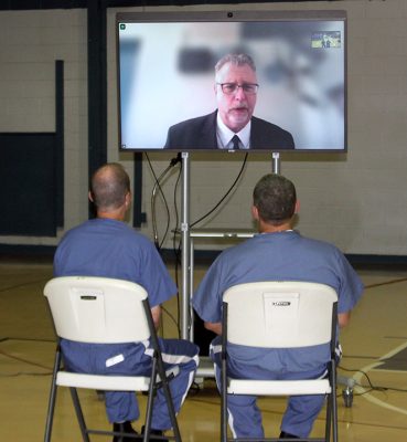 Inmates have the chance to meet with potential employers prior to their release through virtual interviews. The showcase visitors watched a demonstration of such an interview, with two inmates talking about the skills they obtained while in prison.