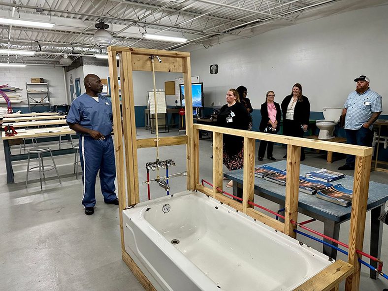 That “stuff” included a tour of the facilities where inmates are learning skills and working toward their GEDs. Visitors were placed in small groups that were led by inmates, who escorted them to areas that are devoted to computer-aided drafting, food service, HVAC and plumbing as well as general education.
