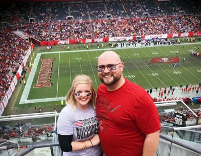 Ciara wasn’t a sports person before, but now she considers going to a game with Logan an ideal date. Here, the two are pictured at a Tampa Bay Buccaneers game.