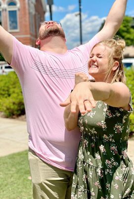 Unbeknownst to Ciara, Logan had brought along a ring. As they were taking in the sights of Covington, Logan suggested they take a photo of Ciara looking at the city’s clock tower.