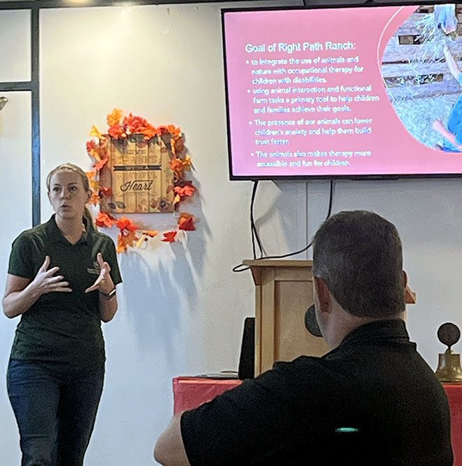 Luke, a 2004 Bradford High School graduate, spoke to the Kiwanis Club of Starke at its Oct. 28 meeting about the creation of Right Path Ranch, which allows her to provide pediatric occupational therapy to Bradford and Union counties.