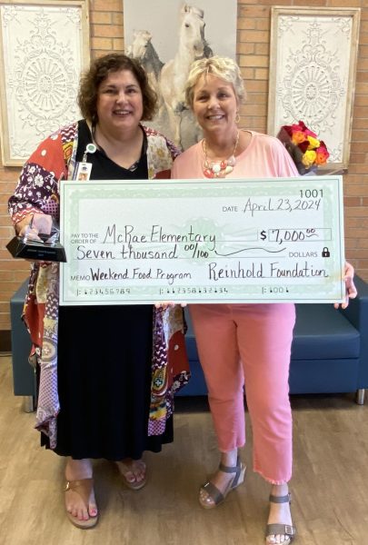 McRae Elementary’s weekend food program recently won the Reinhold Foundation’s second-place prize for its Celebrate Clay awards earlier this year.  The award came with a $7,000 cash prize.