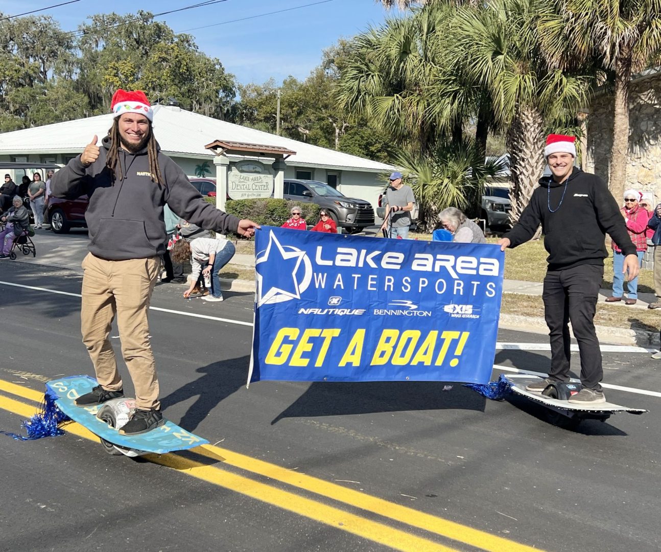 Elisabeth Summers and John Raimer of the Garden Club of the Lakes.Lake Area Water SportsMcRae Family FloatMelrose Bobbing Ladies Ukulele BandMichael Heeder with MarshallQ.I. Roberts Junior-Senior High Marching KnightsBecky, Roy, Tina, Santa and Fred from Lake Region Kiwanis.Santa, Becky, Roy Claus Float