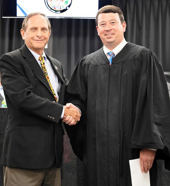 Newly sworn Starke Commissioner Bob Milner with Judge Tatum Davis.