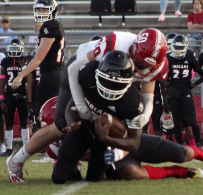 Bradford, benefitting from a 10-yard run by Jones and an 18-yard run by Willie Pollard, marched to the Baldwin 21. Jones, however, was unable to corral a low snap, which the Indians’ Adrian Yeartie scooped up and took the distance for a touchdown at the 5:21 mark of the second quarter. O’Neal added the PAT to put the Indians ahead 17-0.