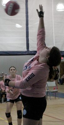 Brooklyn Cooper sends the ball over the net for Northside. Addison Wilson is pictured in the background.