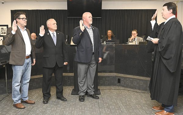 Judge Tatum Davis also presided over the swearing in of District 5’s new commissioner, Andy Redding, who took the oath of office alongside returning commissioners Danny Nugent and Shannon Smith.