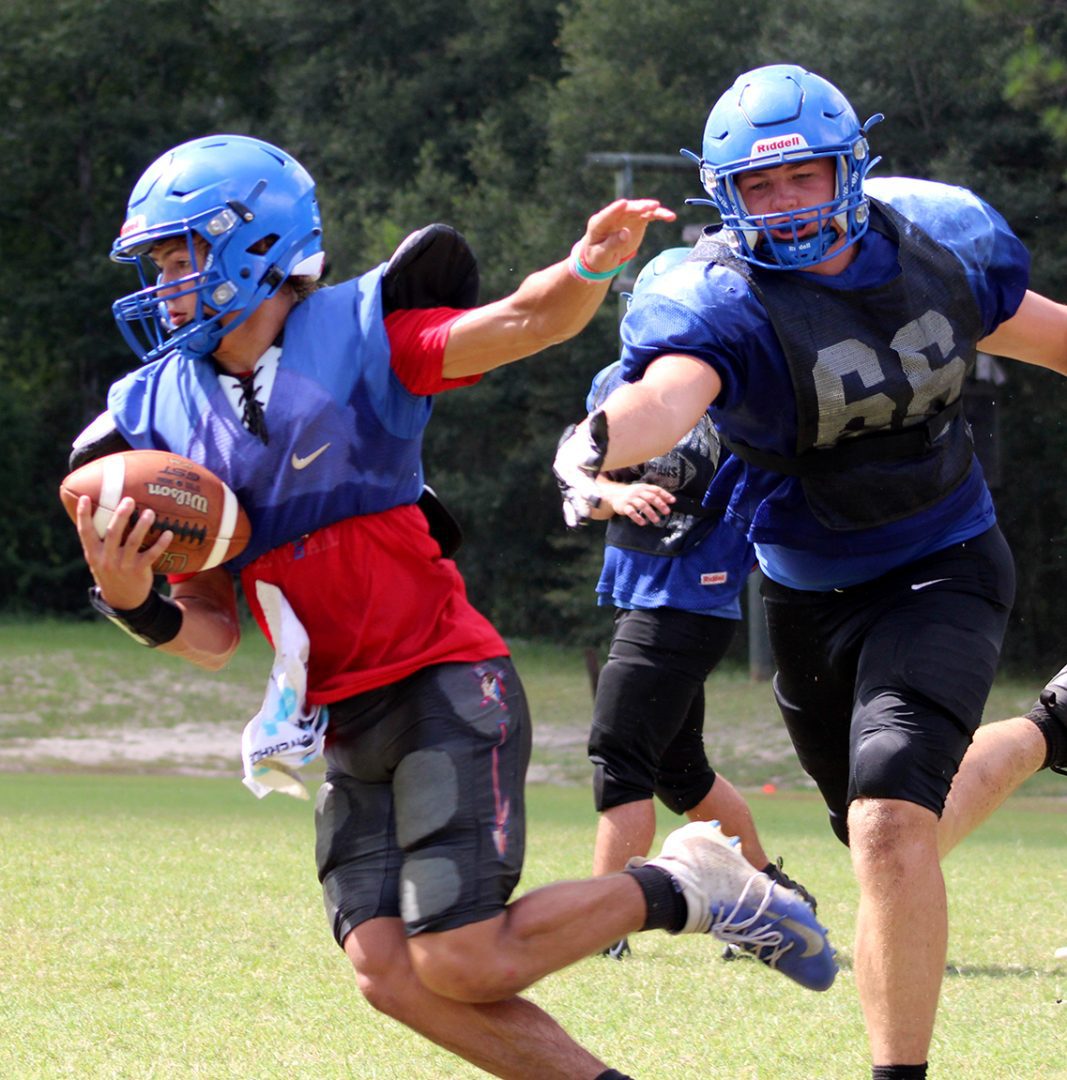 Looking at special teams, Reynolds said senior Connor Guy has the potential to be an All-State punter, while at placekicker, he’s got two options in sophomore Tyler Sapp and freshman Ryder Thomas. In the spring jamboree, Sapp made both of his extra-point attempts, while Thomas made his one attempt.
